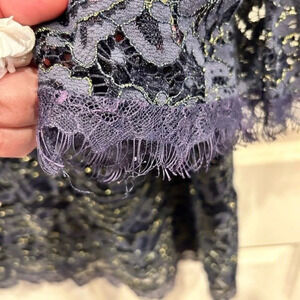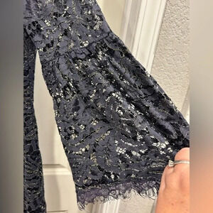 Euc. No flaws. Lined floral lace. Has metallic thread. Cotton/ rayon/ metallic thread. Lined. Arms are not lined. Bell sleeves.