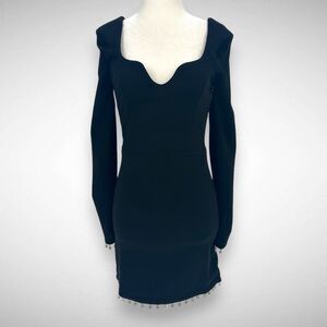 For sale is this Dress the Population Pearl Trim Ronin Black Long Sleeve Mini Dress Size XS X-Small. This dress is new without tags and features a sweetheart neckline and long sleeves with pearl trim on the sleeves and bottom hem.