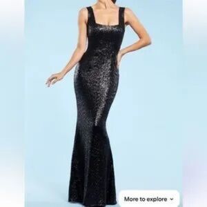 Dress the Population Raven Black Sequin Dress Mermaid Formal Gown size XXL New with tags !!! Hidden back-zip closure Square neck Sleeveless Full-length trumpet skirt Lined Matte black sequins