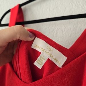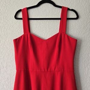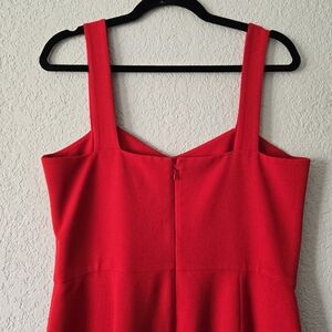 Elegant red midi dress. Sleeveless with a fitted silhouette. Perfect for any occasion.