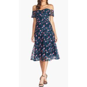 Dress the Population River Embroidered Off the Shoulder Midi Dress Pink Floral