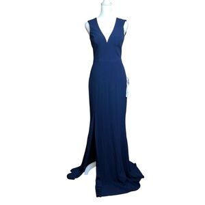 Dress the Population Sandra Gown Navy Blue Trumpet Mermaid Slit Maxi Dress Sz XS