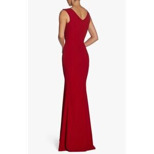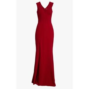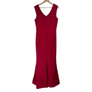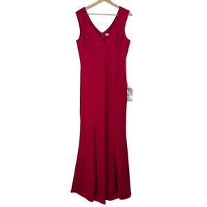 Dress the Population Sandra Gown Sz L Garnet Red Plunge Trumpet Wedding Evening