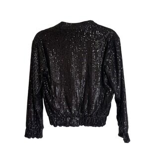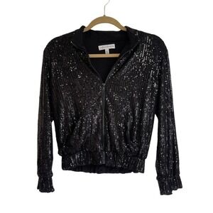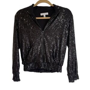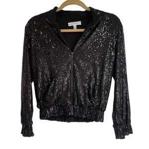 Dress the Population Sequin Disc Bomber Jacket Black Women's Size S