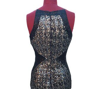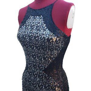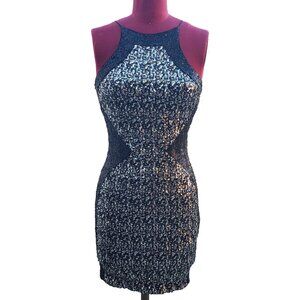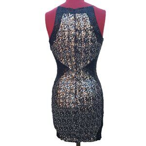 Dress the Population Sequin Dress Small Black Silver Halter Mini Bodycon