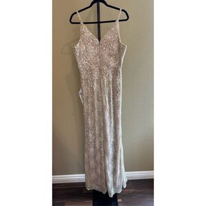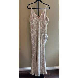Dress the Population Sequin Knitted Embroidered Floral Lace Dress in Beige Size