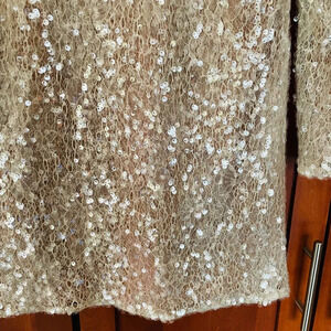 Dress the Population Sequin Lace Overlay Dress Long Sleeve Cream Size Small FLAW