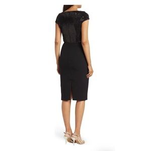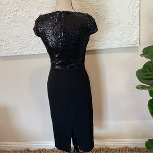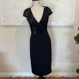 Dress the Population Sequin Surplice Cap Sleeve Sheath Black Dress Size XS NWT.