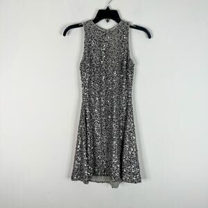 Dress the Population Silver Sequin Mia Mini Flare Dress. Excellent condition. Sleeveless. Hidden back zipper. Lined. W21
