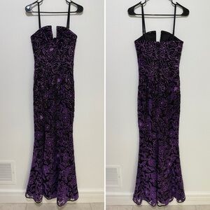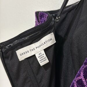 Dress the Population Strapless Mermaid Purple Velvet and Sequins Fernanda Gown in size XS. The Fernanda is an elegant strapless v-neck mermaid dress with a classic and sophisticated silhouette. Constructed from top-quality fabrics. Suitable for formal events or a night out, this dress will give you an unforgettable look. New without tags. No flaws. Never worn or used. Taken out of the packaging for photos only.