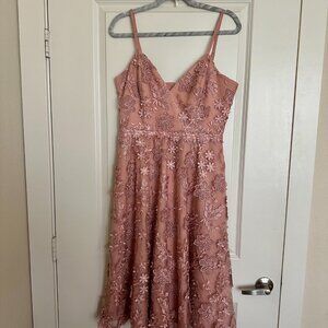 Dress the Population Tahani Floral Embroidered Fit & Flare Midi Dress - Blush/L