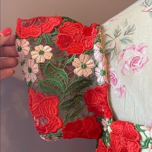 This knee-length pencil skirt by Dress the Population features a striking red and cream color palette, perfect for a cocktail event or night out. Its form-fitting silhouette and high waist offer a sleek and sophisticated look, while the smooth fabric adds a touch of elegance.