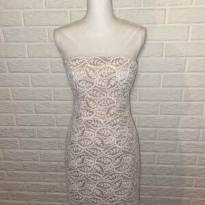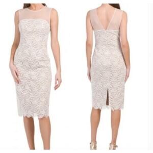 Dress the Population Tegan Illusion Mesh Embroidered Lace Cocktail Dress NEW S