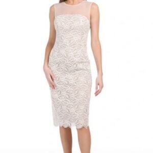 NWT Dress the Population Tegan Illusion Mesh Embroidered Lace Cocktail Dress