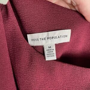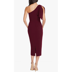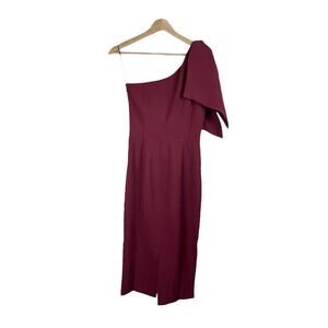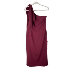 Dress the Population Tiffany One-Shoulder Midi Cocktail Dress Burgundy Red Sz M