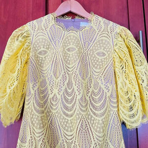 Dress the Population Toni Lace Flutter Sleeve Mini Dress Dandelion Size XXS NEW