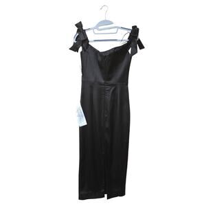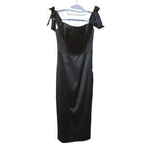This Verona Dress features a strapless corset bodice adorned with bows, giving a flattering look. The tea length design offers a classy and feminine touch, making it perfect for any special occasion. The perfect choice for those who want to look effortlessly chic and elegant.