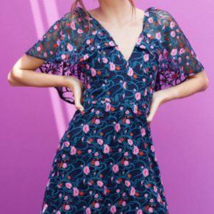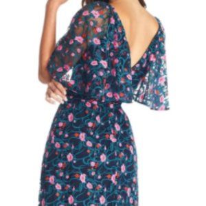 The day dress you need in your wardrobe, the Virginia midi dress is fun and flirty featuring a floral design with a deep V neckline, flowy cape sleeves, and ruffle hem skirt.