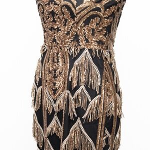 Dress the Population - Viviana Strapless Sequin Fringe Midi Dress