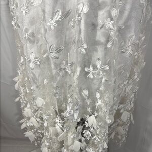 Elevate your style with this stunning Dress the Population white floral appliqué midi dress, perfect for weddings, cocktail parties, or elegant evenings. This dress features a deep V-neckline, sleeveless silhouette, and a beautifully embroidered sheer floral skirt overlay that adds texture and sophistication.
