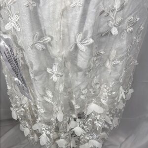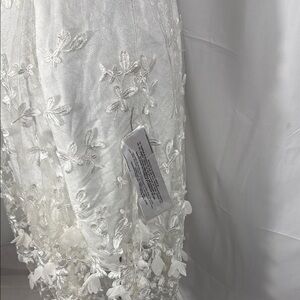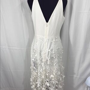 Dress the Population white dress, wedding guest dress, bridal shower dress, embroidered midi dress, floral appliqué dress, V-neck cocktail dress, sleeveless formal dress, mesh overlay dress, elegant party dress, NWOT designer dress.