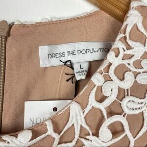 Dress the Population White Lace Crochet Shift Dress Bell Sleeves