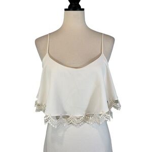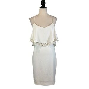 Dress the Population White Sleeveless Dress Lace Trim Overlay Size M (B31#11)