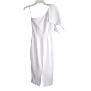 Dress the Population White Tiffany One Shoulder Bow Midi Dress Size Small