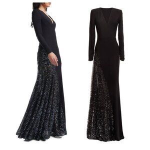 Dress the Population Winnie Sequin Panel Long Sleeve Gown