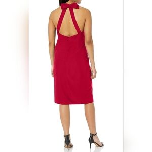 Dress the Population Women's Emme High Neck Back Bow Body Con Midi Dress RED XS