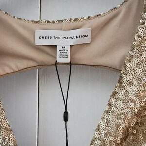 Dress the Population Women's Sleeveless V-Neck Sequin Cocktail Midi Dress Sz M