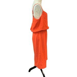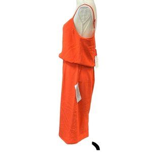 Dress the Population Womens XL Alondra Blouson Midi Dress Orange Tank Pencil Skt
