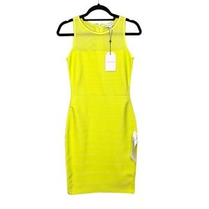 Dress the Population Yellow Chartreuse Mesh Bodycon Mini Aitana Dress Medium NWT