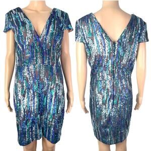 Dress the Population Zoe Sequin Blue Purple Sheath Mini Party Formal Dress