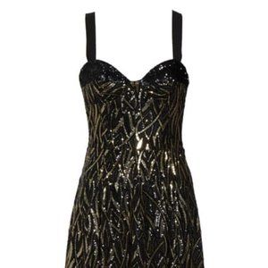 Invitations to dance are inevitable when you arrive in this bustier bodice midi finished with a skirt made for twirling and detailed in sequined tendrils