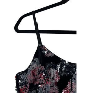 color: black multi, adjustable straps, shimmering sequins, scoop neck, slips on over head, lined