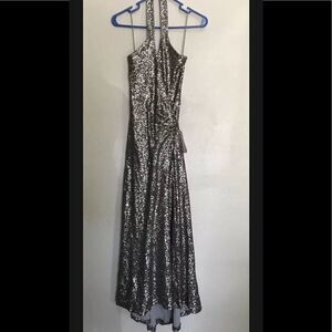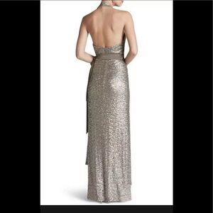 Dress the Population giselle sequin wrap maxi dress silver size large