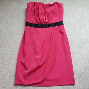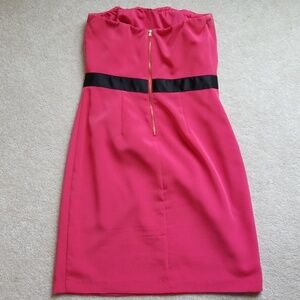 Beautiful strapless pink dress with black ribbon, gold exposed back zipper. Very flattering on. Worn only 2x, excellent condition. Smoke free/pet free home. No stains, no pulls.