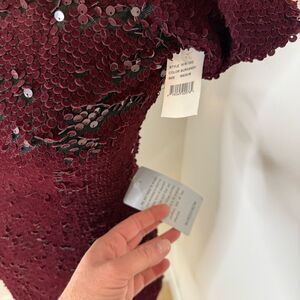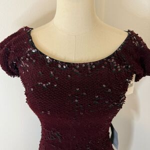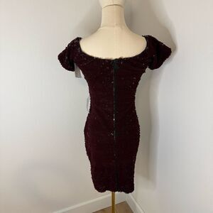 [Dress the Population] Burgundy Off-the-Shoulder Bodycon Midi Dress- Size Medium