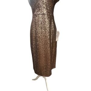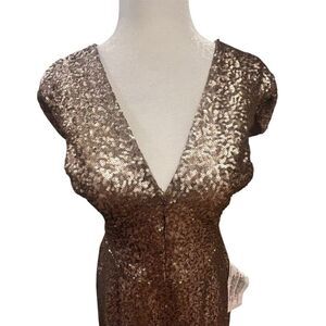 NWT Dress the Population sequin gold women's midi dress with v neck size xl
