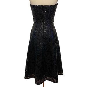 This Ruby Dress is perfect for any occasion. Its strapless bustier fit is designed to be flattering, with a fit and flare midi silhouette and shimmering sequin fabric to add a touch of sparkle. For a show-stopping look, this dress is the perfect choice.