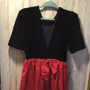 Dress vintage black velvet and red with bow on back by Althuser  Size 14