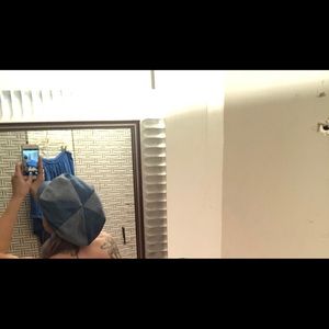 This dress can be worn several ways! It’s is super cute and form fitting, with a layer over the top part of the dress! Fun for going out in! The vintage hat will come with it!