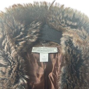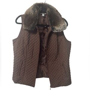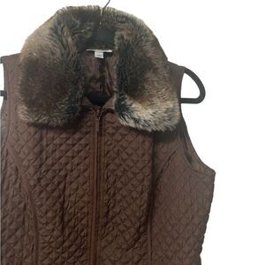 Dressbarn Brown Waterproof Quilted Light Vest Faux Fur Collar Zip Up Fall Spring