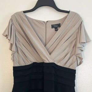 DressBarn Collection | Tan & Black fitted dress Women’s size 12 tiered ruffle