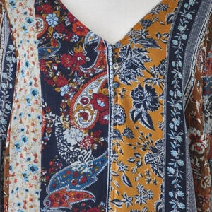 DressBarn Multicolor Paisley Floral Colorful Bohemian Long Puffy Sleeves Size 2X