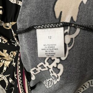 DressBarn SZ 12 Dress Black Gold Chain Design Boat Neck Knit Waist Tie 3/4 Sleev