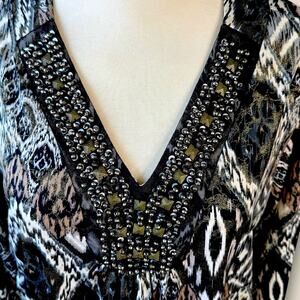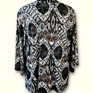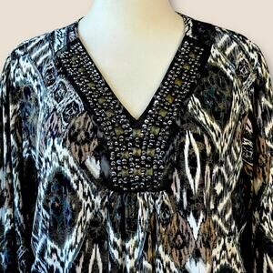DressBarn Vintage 3/4 Sleeves Beaded V Neck Jersey Top Blouse Size 22/24 Ikat