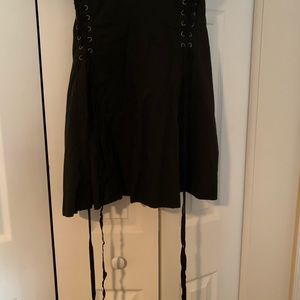 Black, tight in waist dress, dress with boots , very sexy