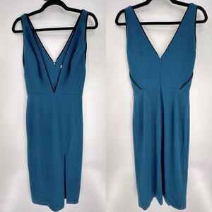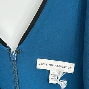 Dress The Population Deep V Neck Crepe Midi With a Black Pipping Dress. Size S. In good pre-owned condition. No visible flaws.